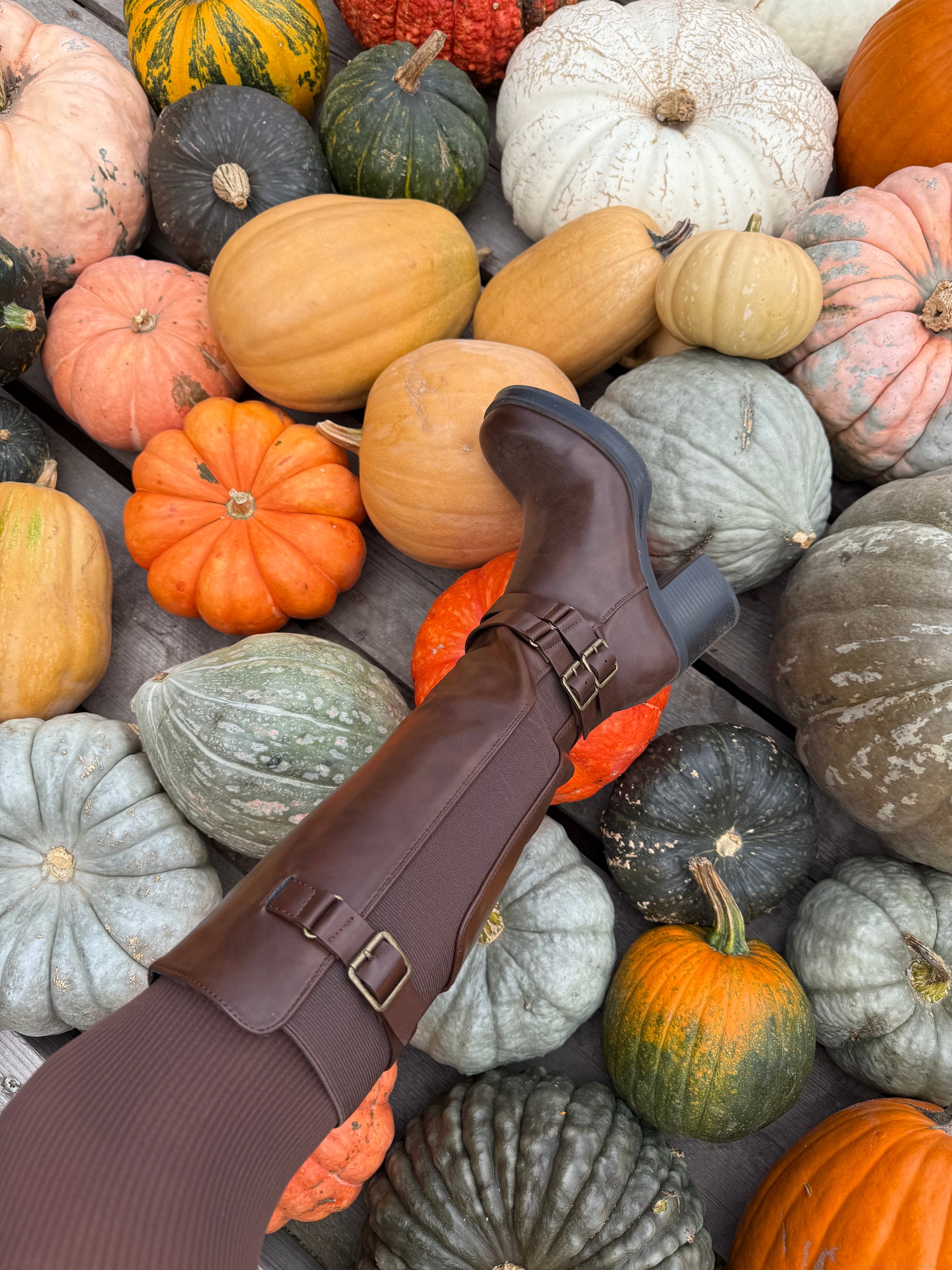 ANNIKA are knee-high boots in smooth faux leather with a bold and refined look. Equipped with three decorative metal buckles for a trendy rider style. Side zip closure for added convenience. Soft inner lining and sturdy sole.