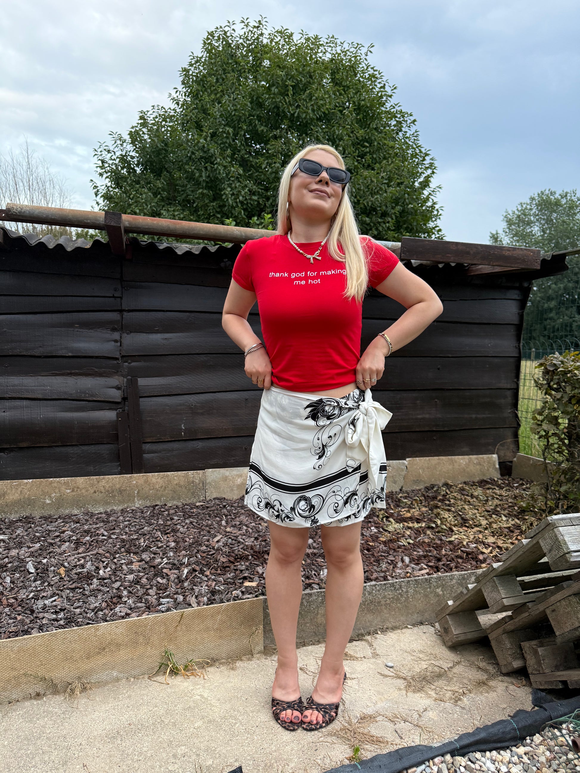 The early 00’s called… and we’re answering. This floral swirl aka "vector flourish" skort brings back the best of Y2K energy with its playful wrap-around design and side tie detail. Equal parts skirt and shorts, she’s flirty, easy to-wear and ready for anything – from beach strolls to festival nights.