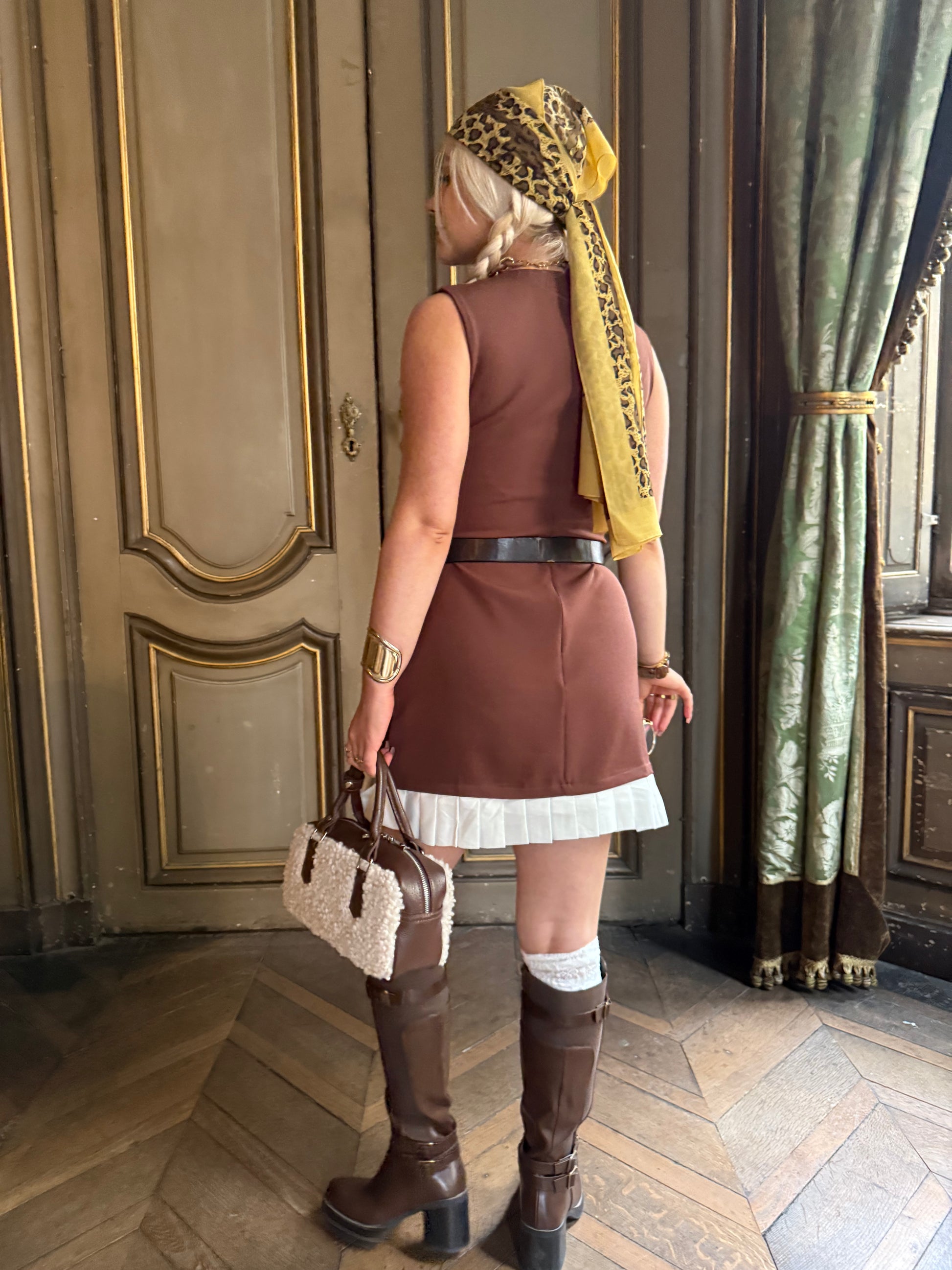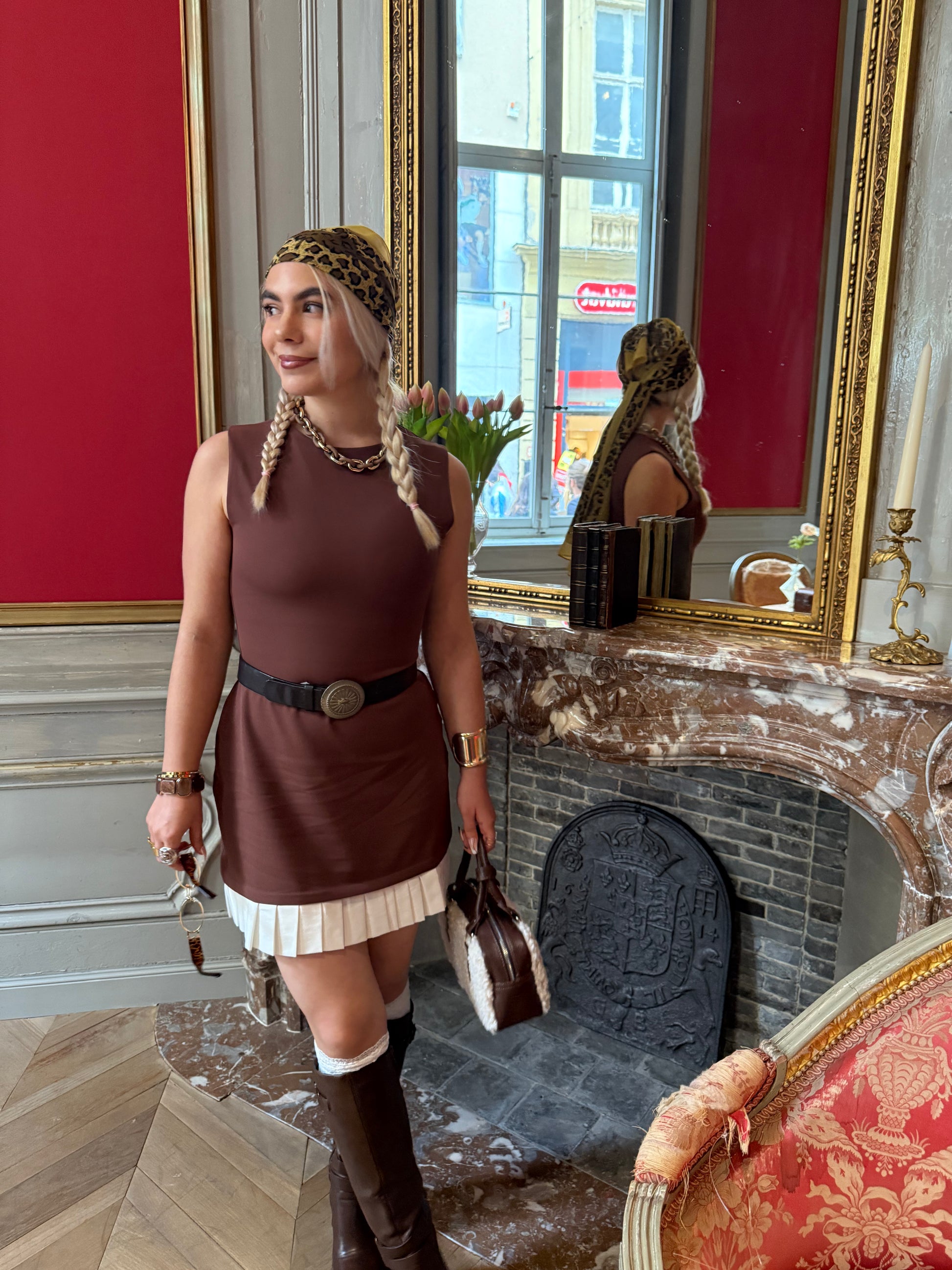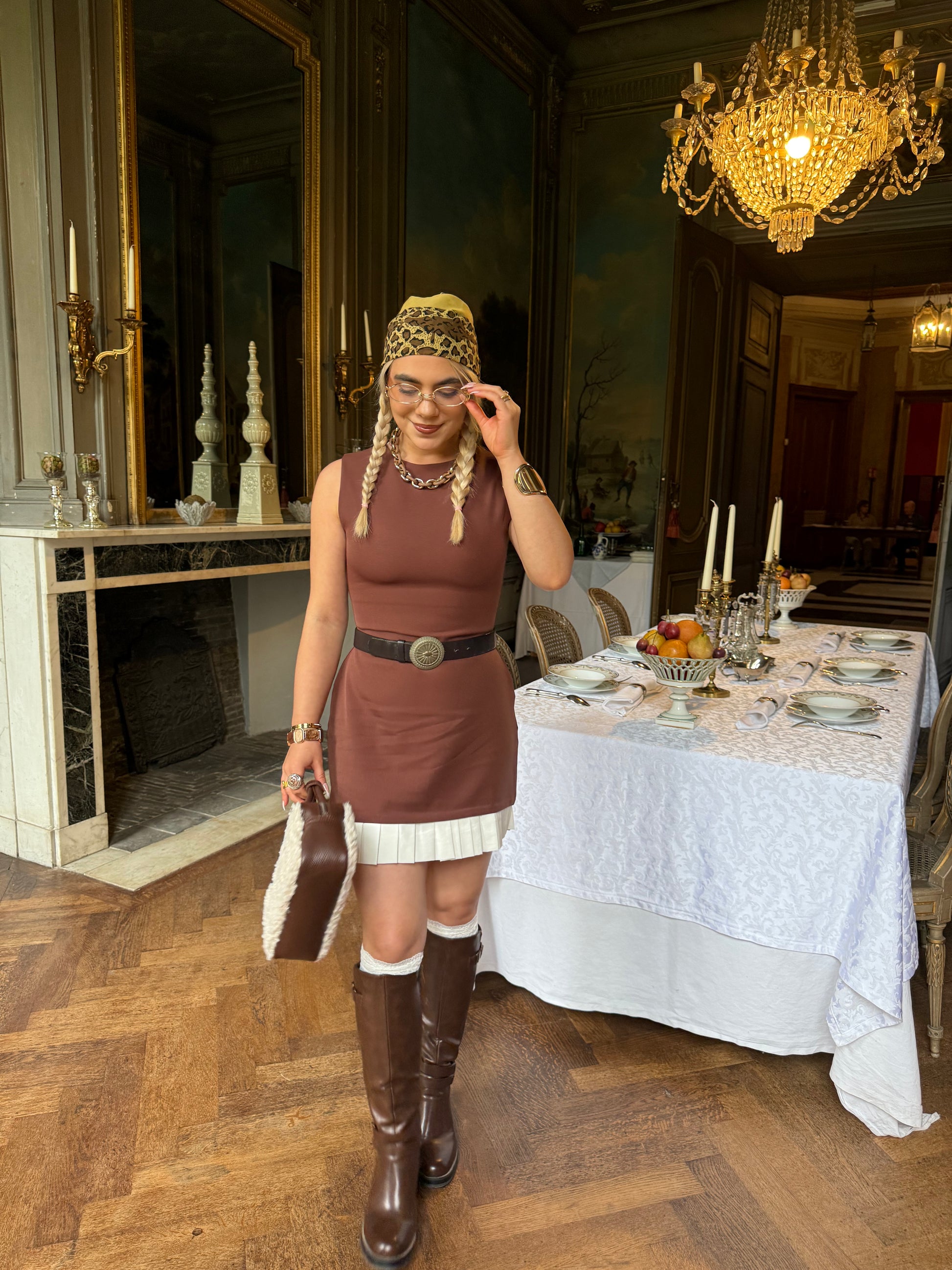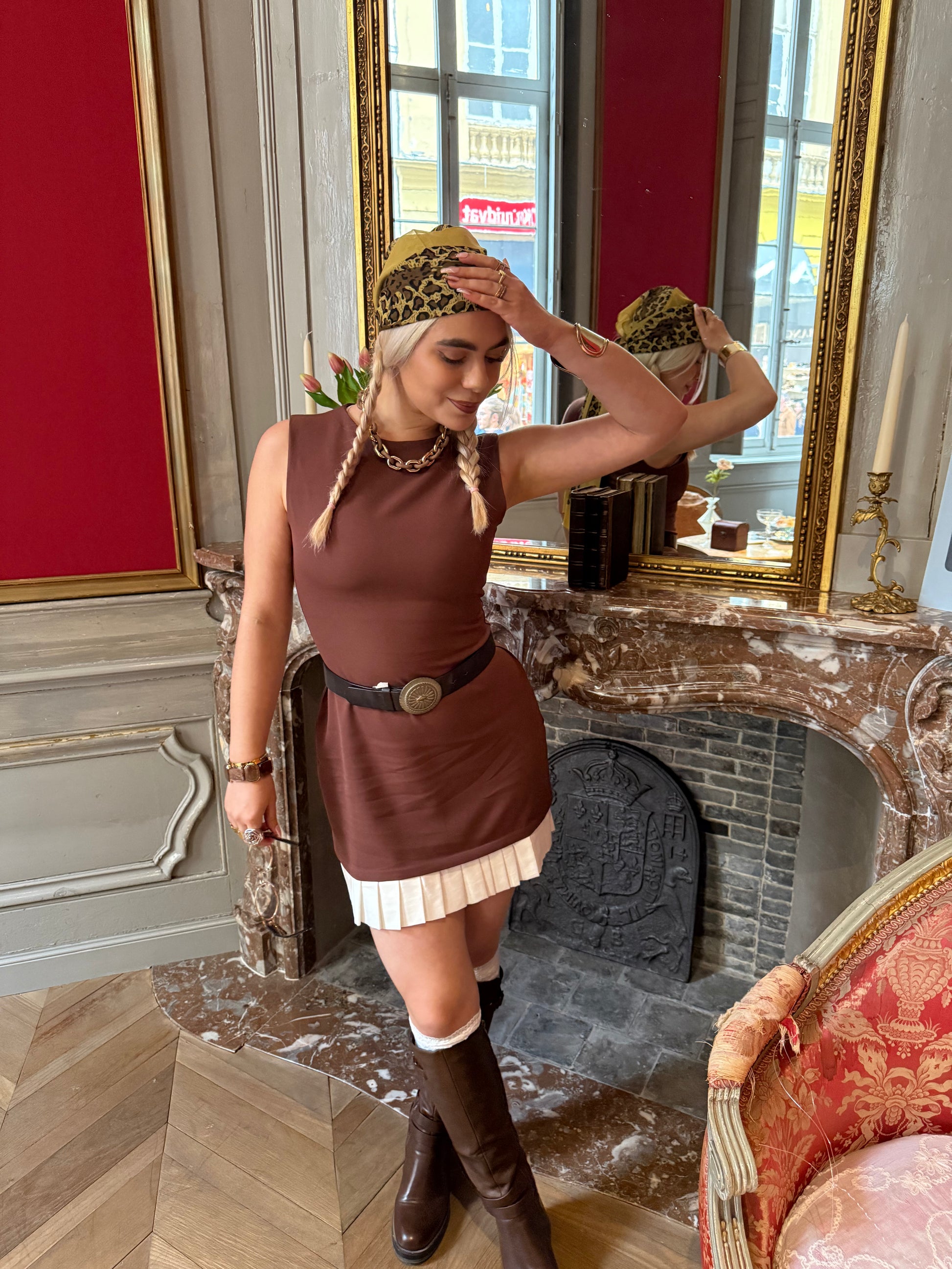 PRETZEL - Mini Dress with Pleated Hem - Cinnamon