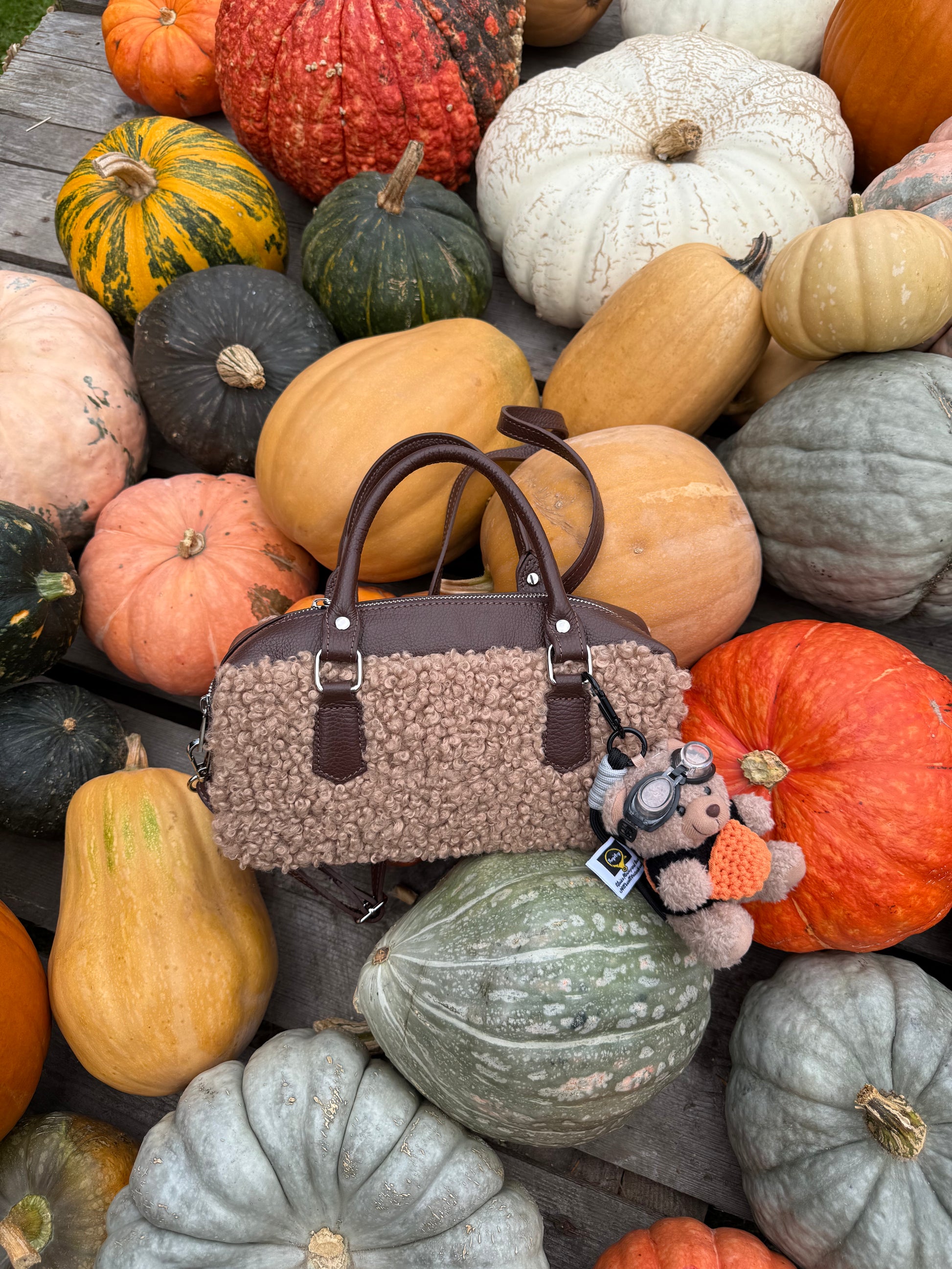 Our WOOLOO Teddy Leather Bag blends soft, cloud-like teddy texture with sleek chocolate brown leather details — With its structured silhouette and polished silver hardware, she’s the perfect mix of snuggly charm and timeless chic.